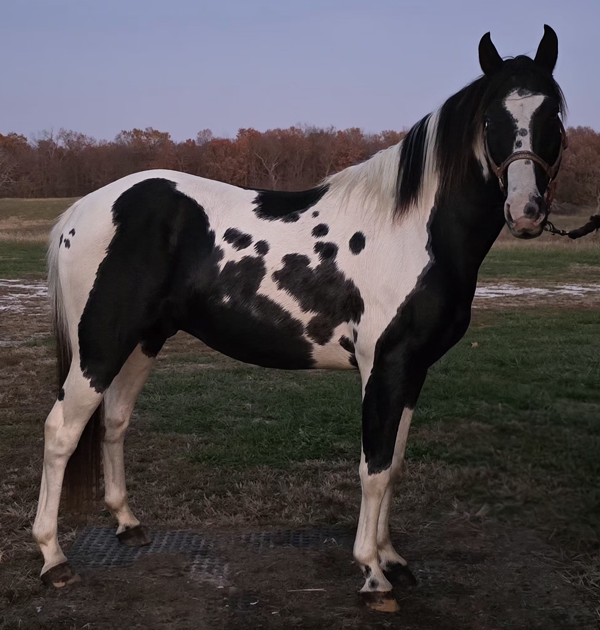 Extremely sweet stallion that produces the desired qualities (gait, shake, stride, and disposition) with the added “Hollywood” color……Chrome!