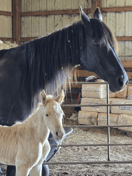 Majesty was the only registered foal sired by Moroni. Majesty was a big beautiful girl who we lost the summer of 2025 after blessing us with Chicken Nugget. Nuggie was her first foal.