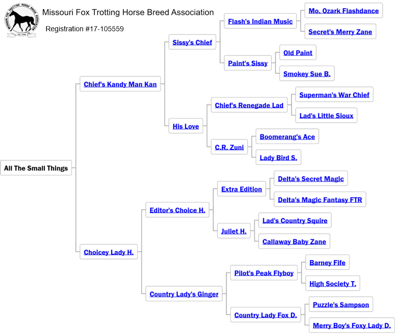 Lady, He’ll Bent N Glory Bound, The Legend’s Goodtime, The Legend’s Prime Time, (paternal) Mr. Frank Sinatra, Frank’s Ladybug, Frank’s Suekey, and