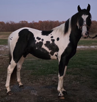 Color: Black Sabino stallion with star connecting strip to snip and all four socks.